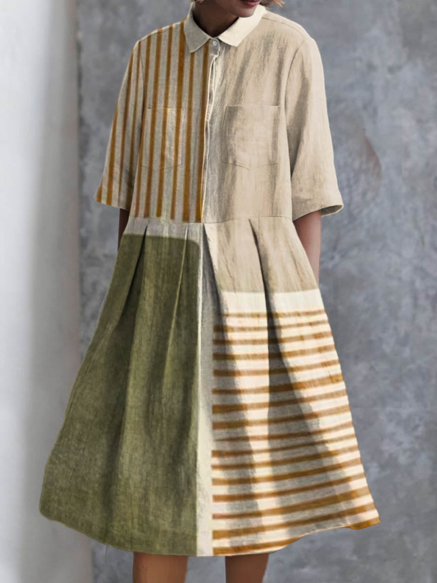 Women's Abstract Geometric Line Pattern Print Pocket Cotton Dress