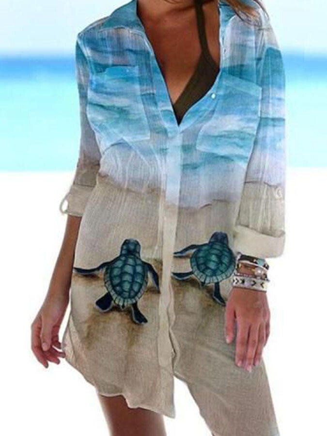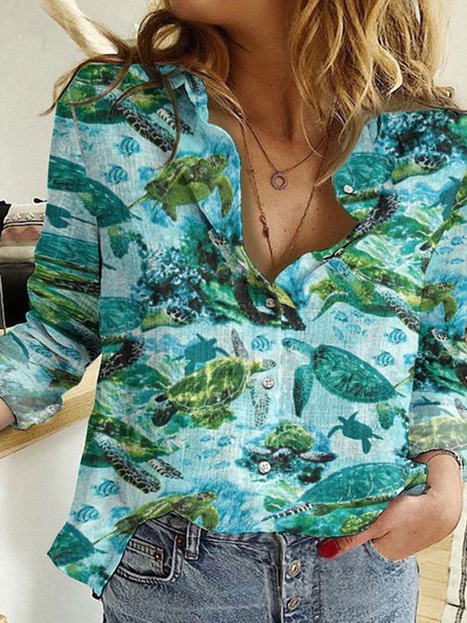 Casual Turtle Print Long-Sleeve Shirt