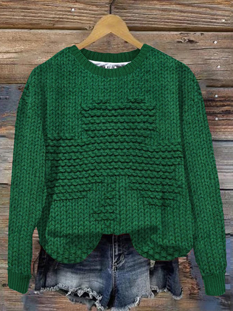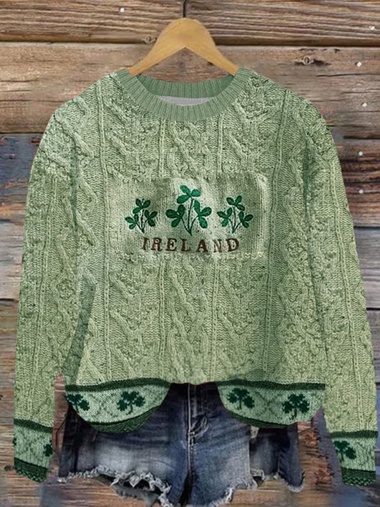 Irish Shamrock Embroidered Retro Chunky Cozy Sweater