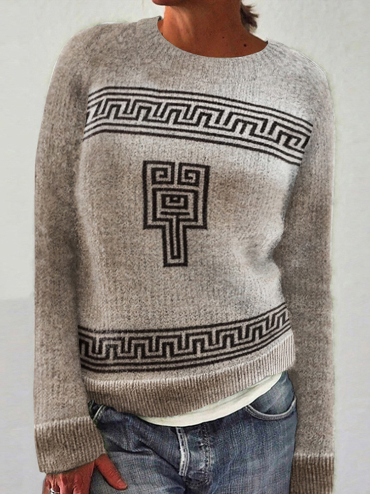 Greek Key Pattern Cozy Knit Sweater
