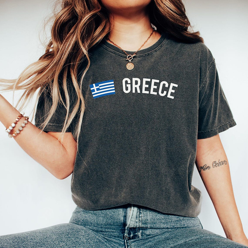 Greece Print Crew Neck Short Sleeved T-Shirt