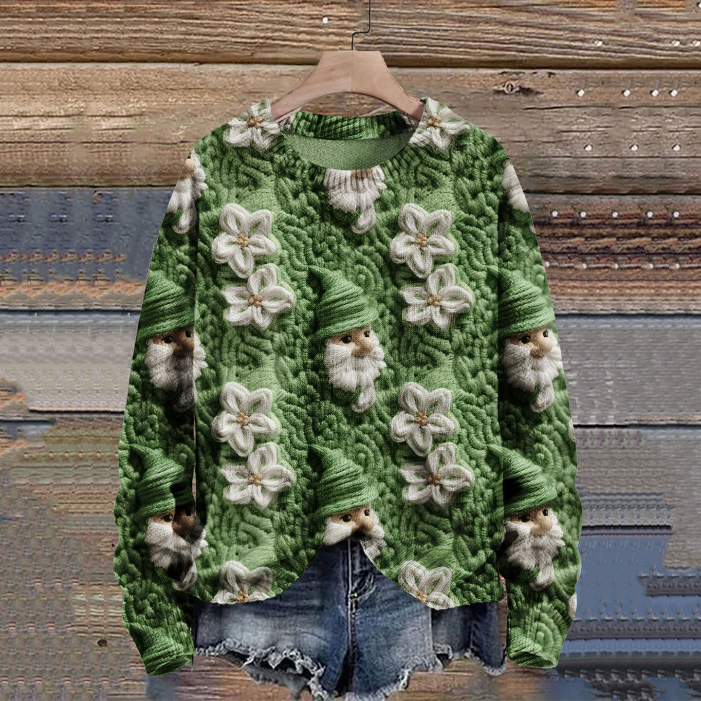 St. Patrick's Day Shamrock Print Knit Pullover Sweater