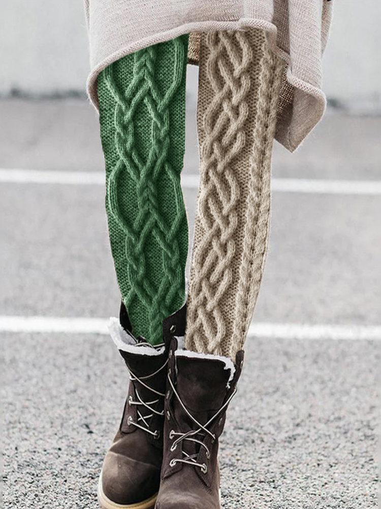 Vintage Celtic Contrast Color Cozy Knit Leggings