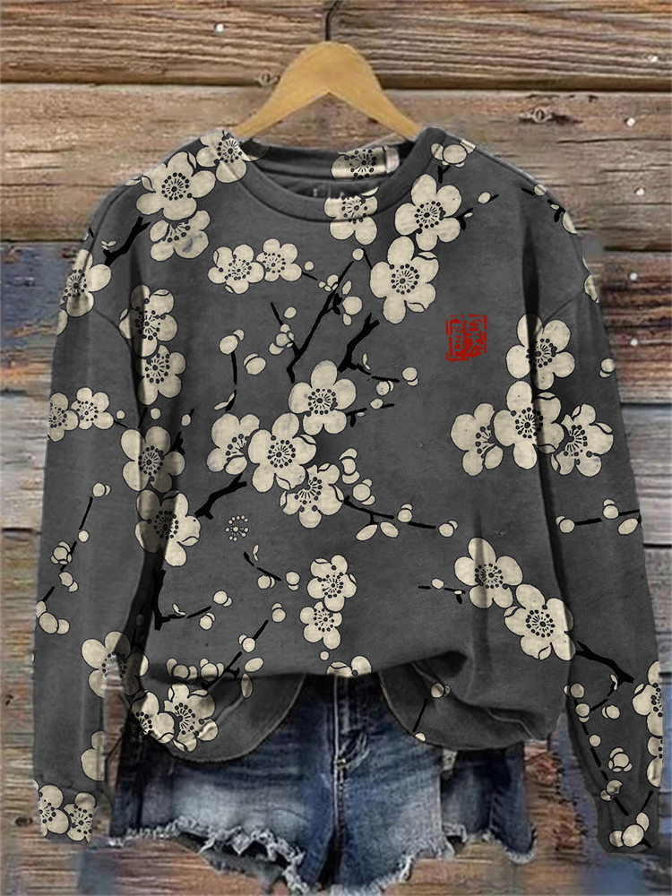 Plum Blossom Art Painting Print Casual Simple Sweatshirt