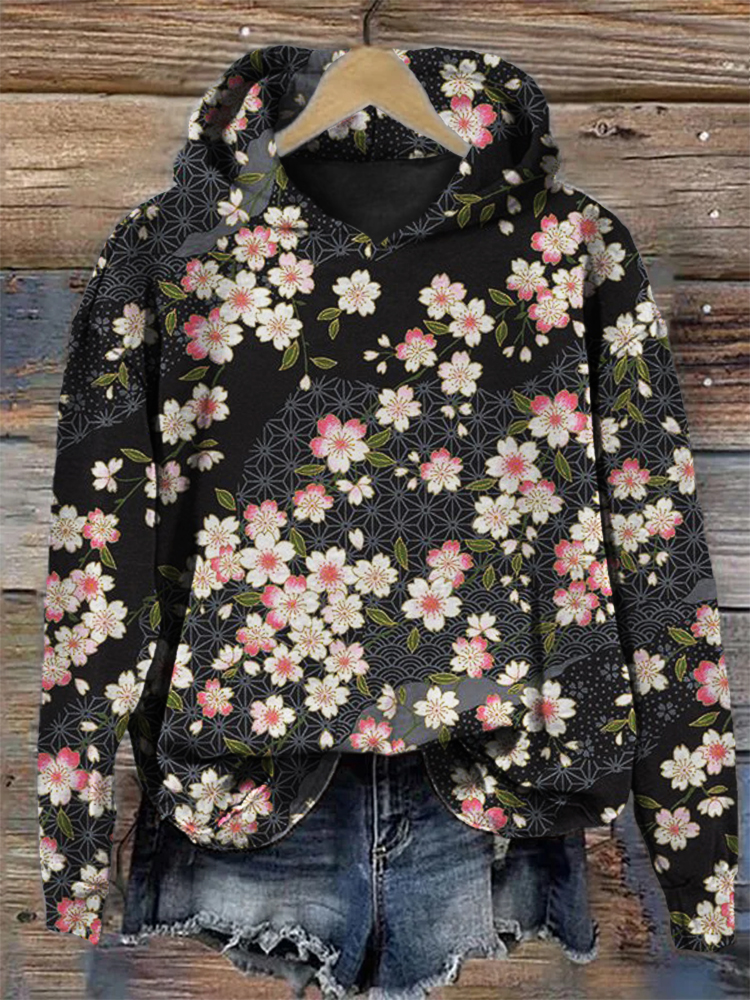 Cherry Blossom Traditional Japanese Art Cozy Hoodie