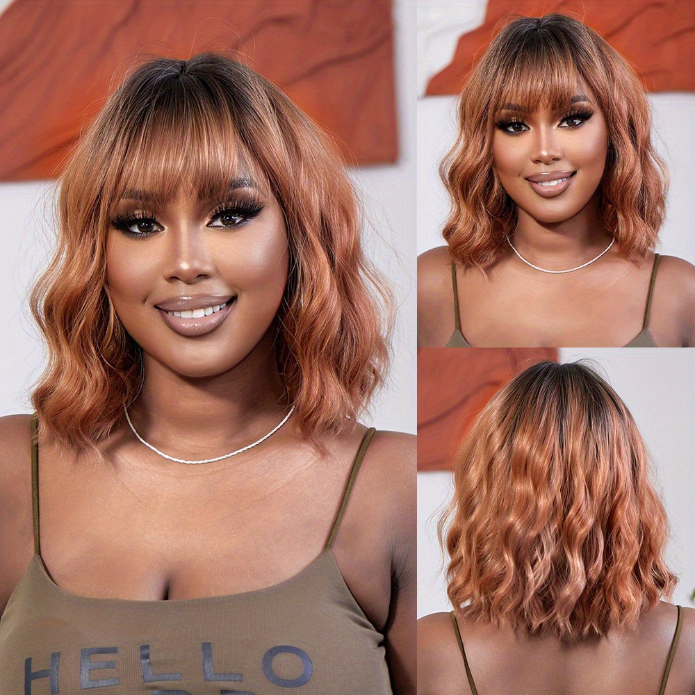 14inch Short Bob Deep Wave Hair Wigs With Bangs For Women Synthetic Fiber Hair Wigs Hair Replacement Wigs