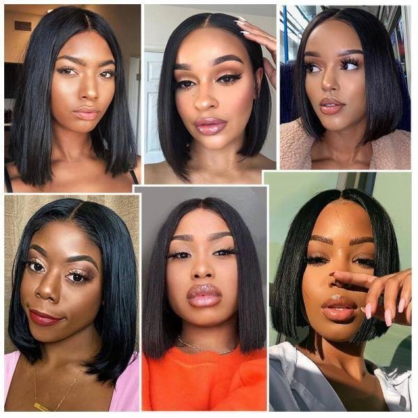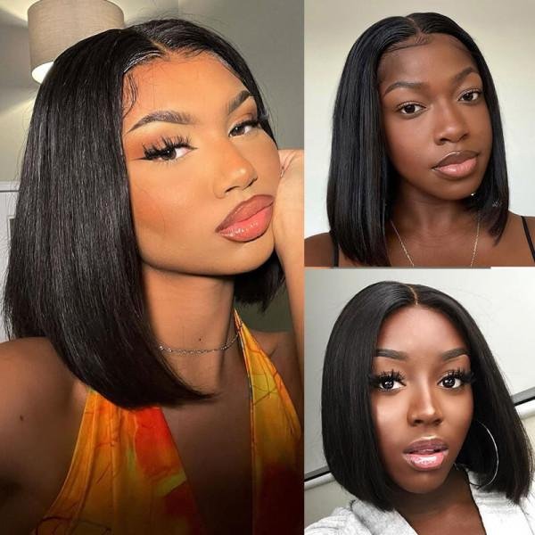 2025 Brazilian Black Straight Hair Glueless Short BOB Wigs Lady Wig