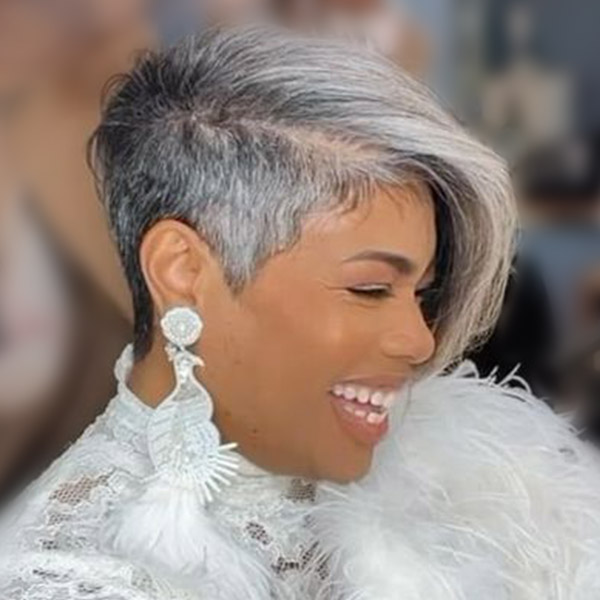 2025 Summer NEW Glueless Short Pixie Cut Salt and Pepper Sliver Grey Wig with bang