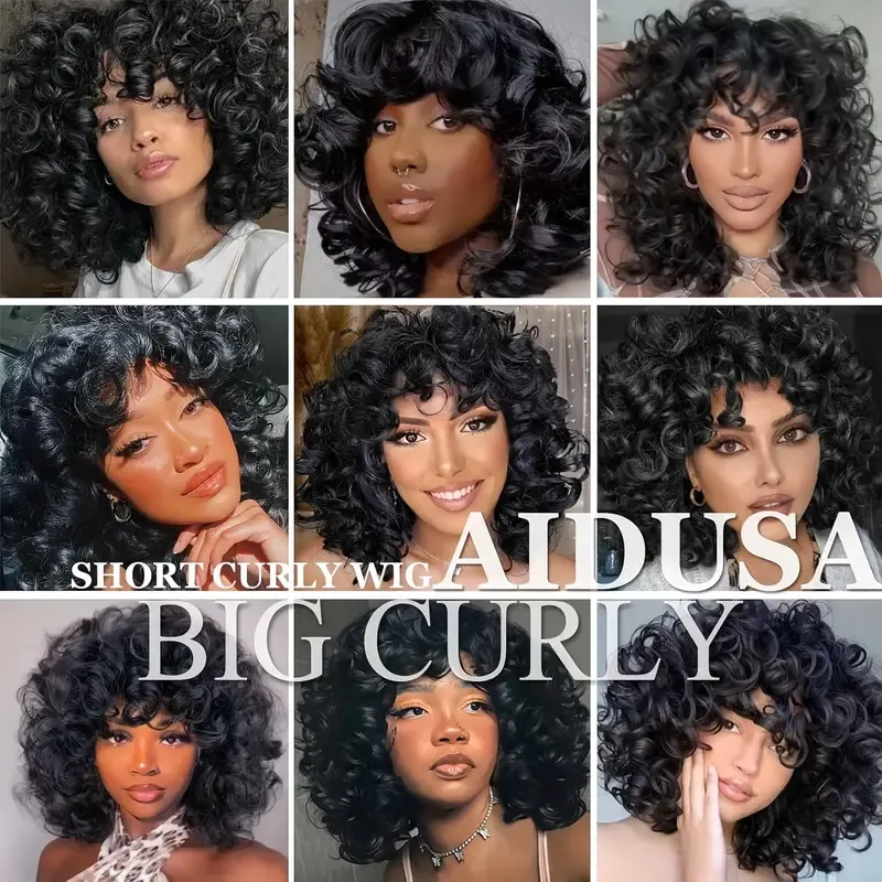 Afro Curly Wigs With Bangs Big Blonde Wigs For Women