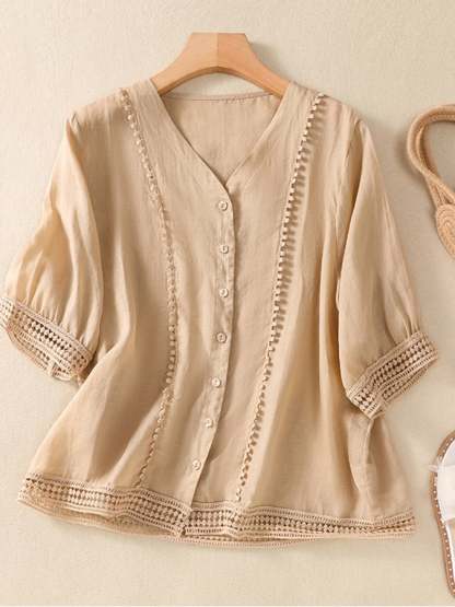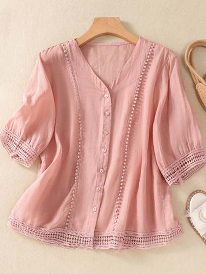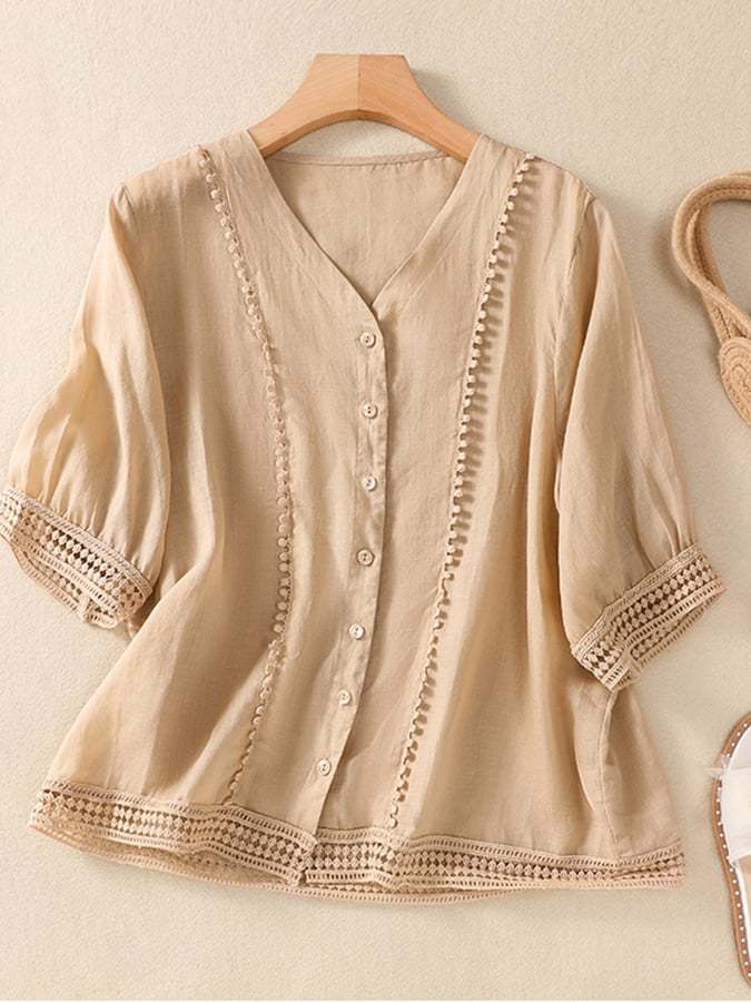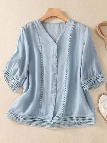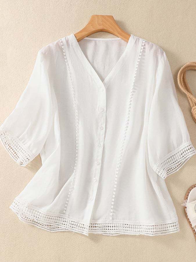 Button Up Chain Link Lace Art Vintage Top