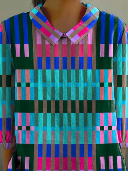 Colorful Geometric Pattern Printed Women's Casual Cotton And Linen 3/4 Sleeve Shirt