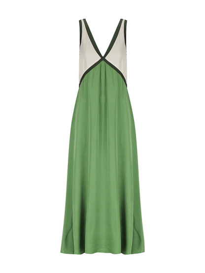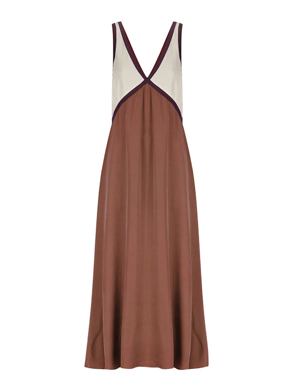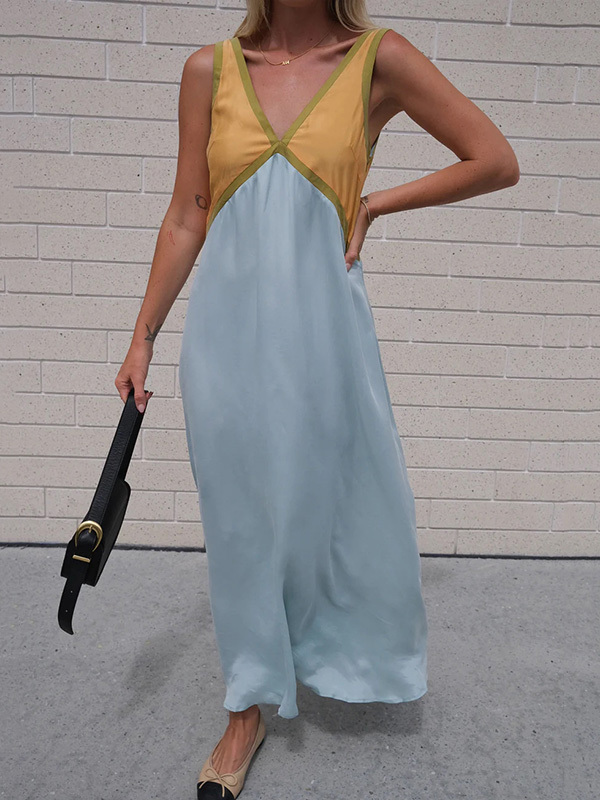 Contrast Color Split-Joint Loose Sleeveless Deep V-Neck Maxi Dresses