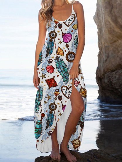 Feather Print Resort Slip Dress