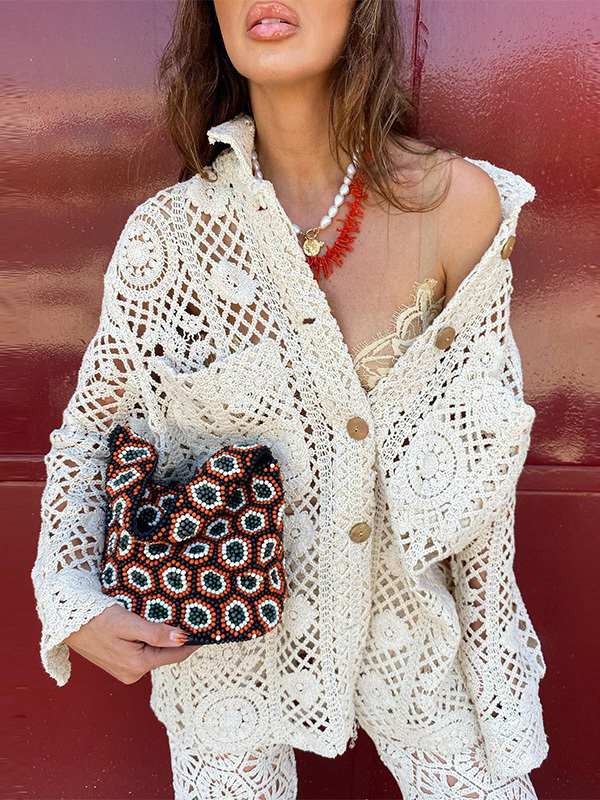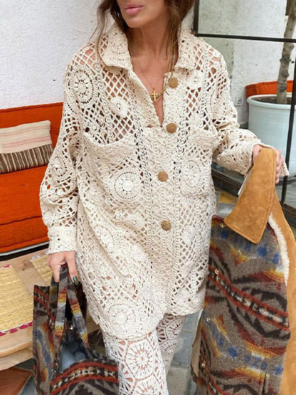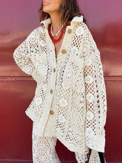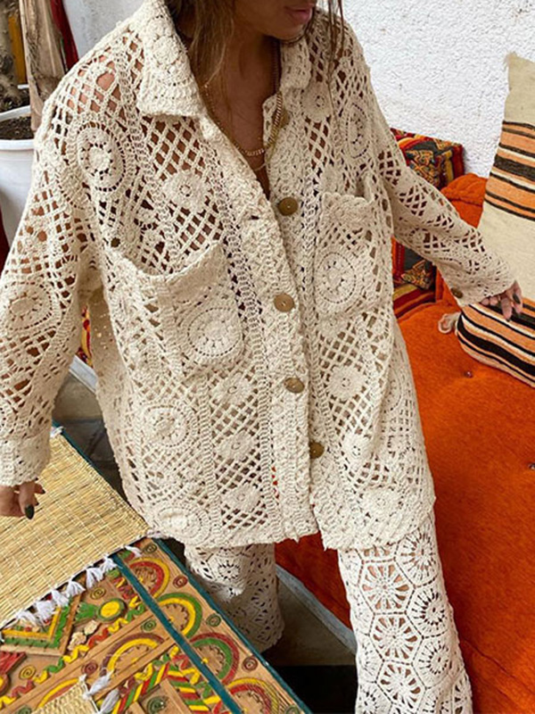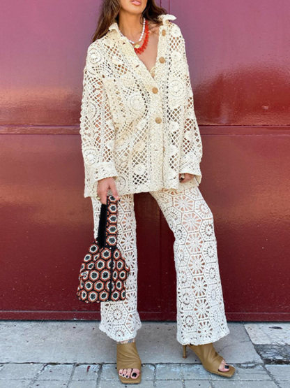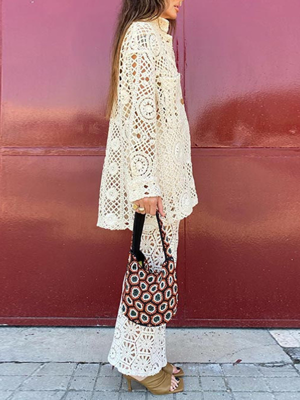 Flower Hollow Long Sleeves Shirt && Pants Two-Pieces Set