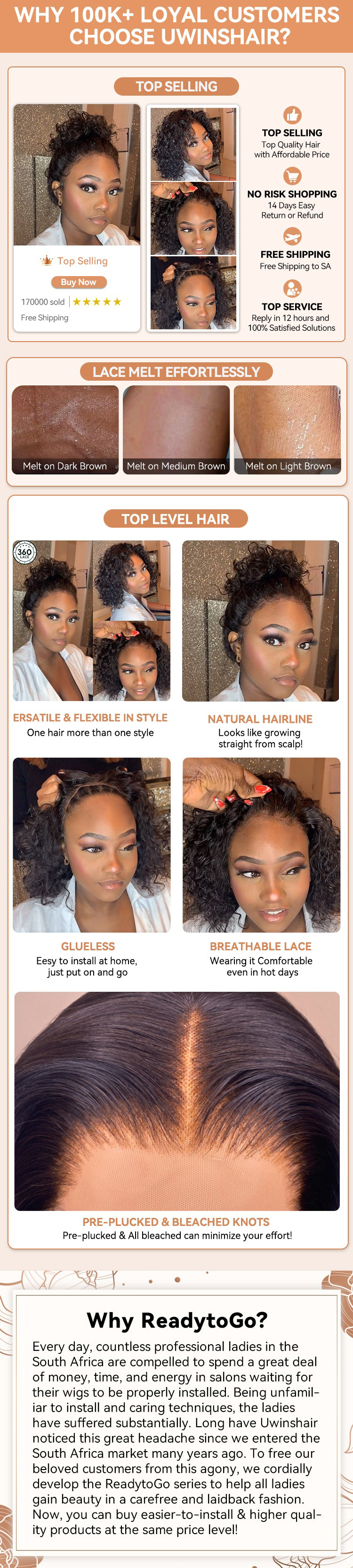 Glueless 360 Lace Wig Water Wave Brazilian Curly Bob Frontal Wigs | Fits All Face Shapes