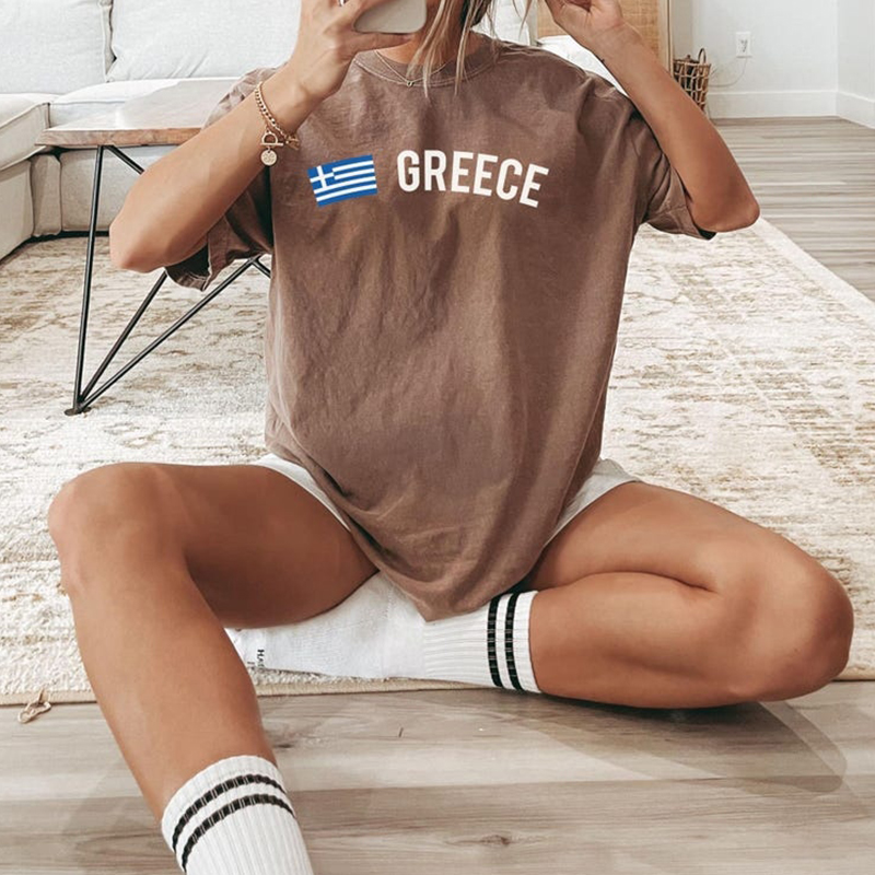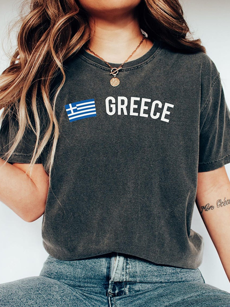 Greece Print Crew Neck Short Sleeved T-Shirt