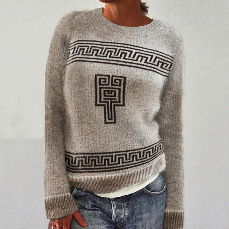 Greek Key Pattern Cozy Knit Sweater