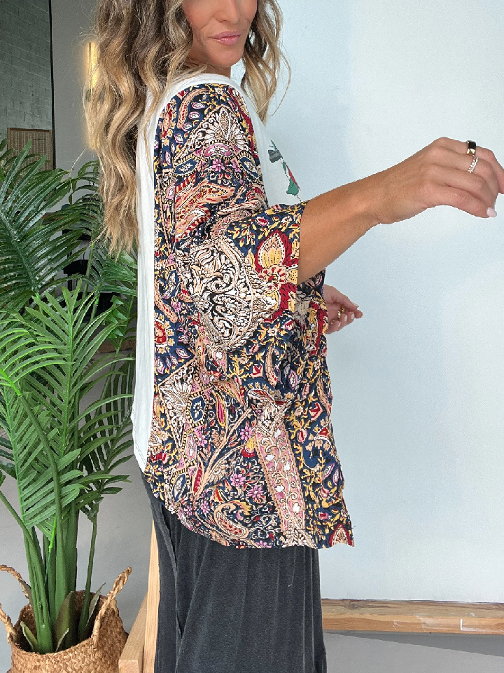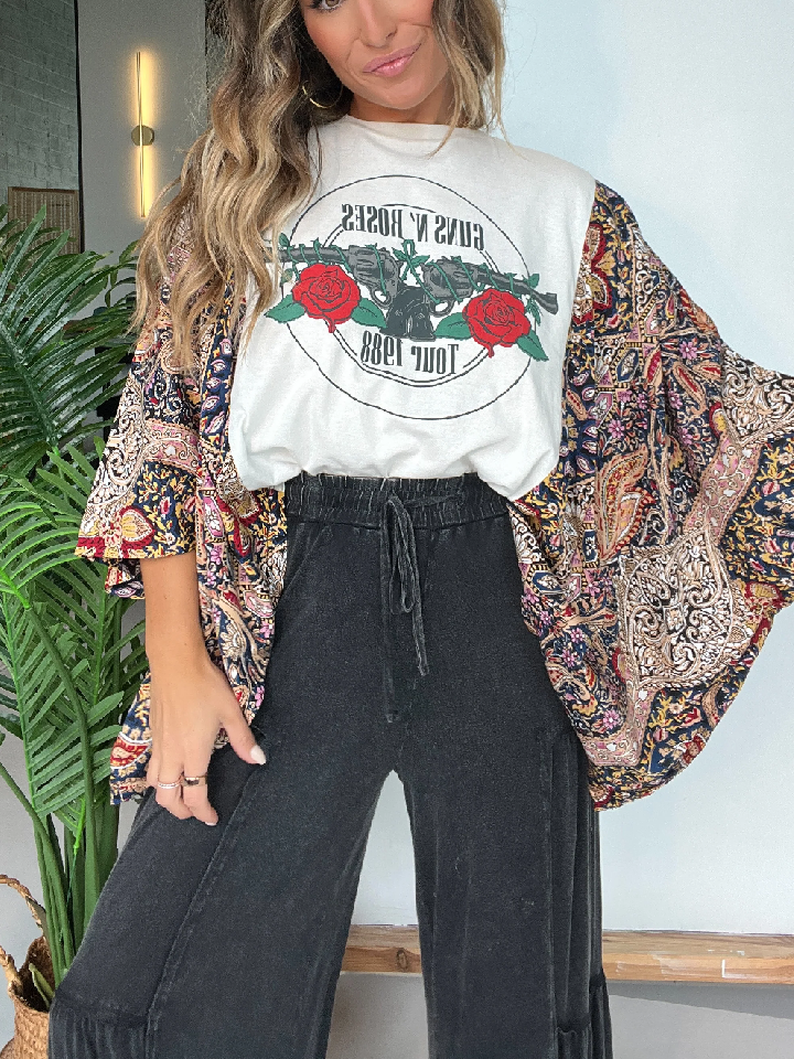 Washed Vintage Graphic Tee with Batwing Sleeve