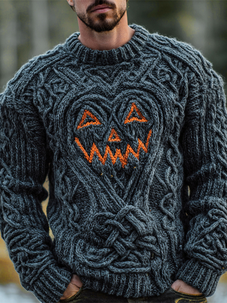 Halloween Pumpkin Light Emoji Viking Men's Knit Crew Sweater