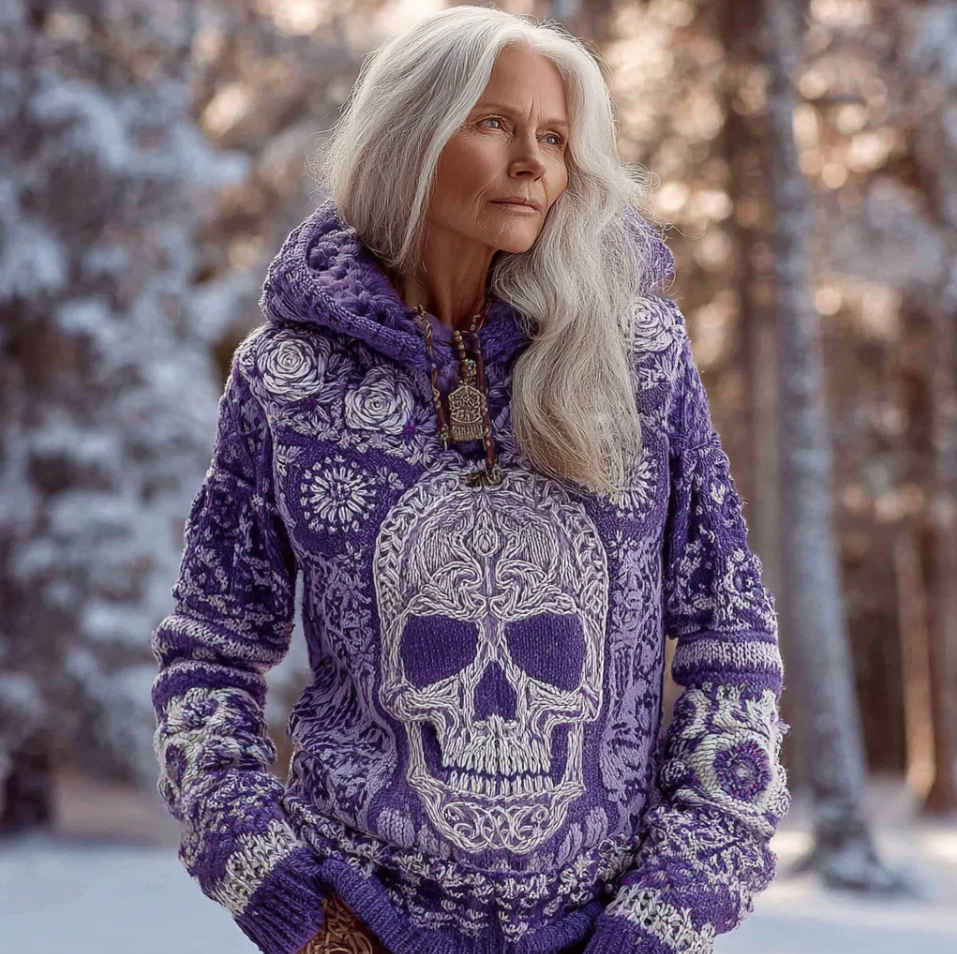 Halloween Skeleton Element Viking Style Women's Hooded Pullover Knit Sweater