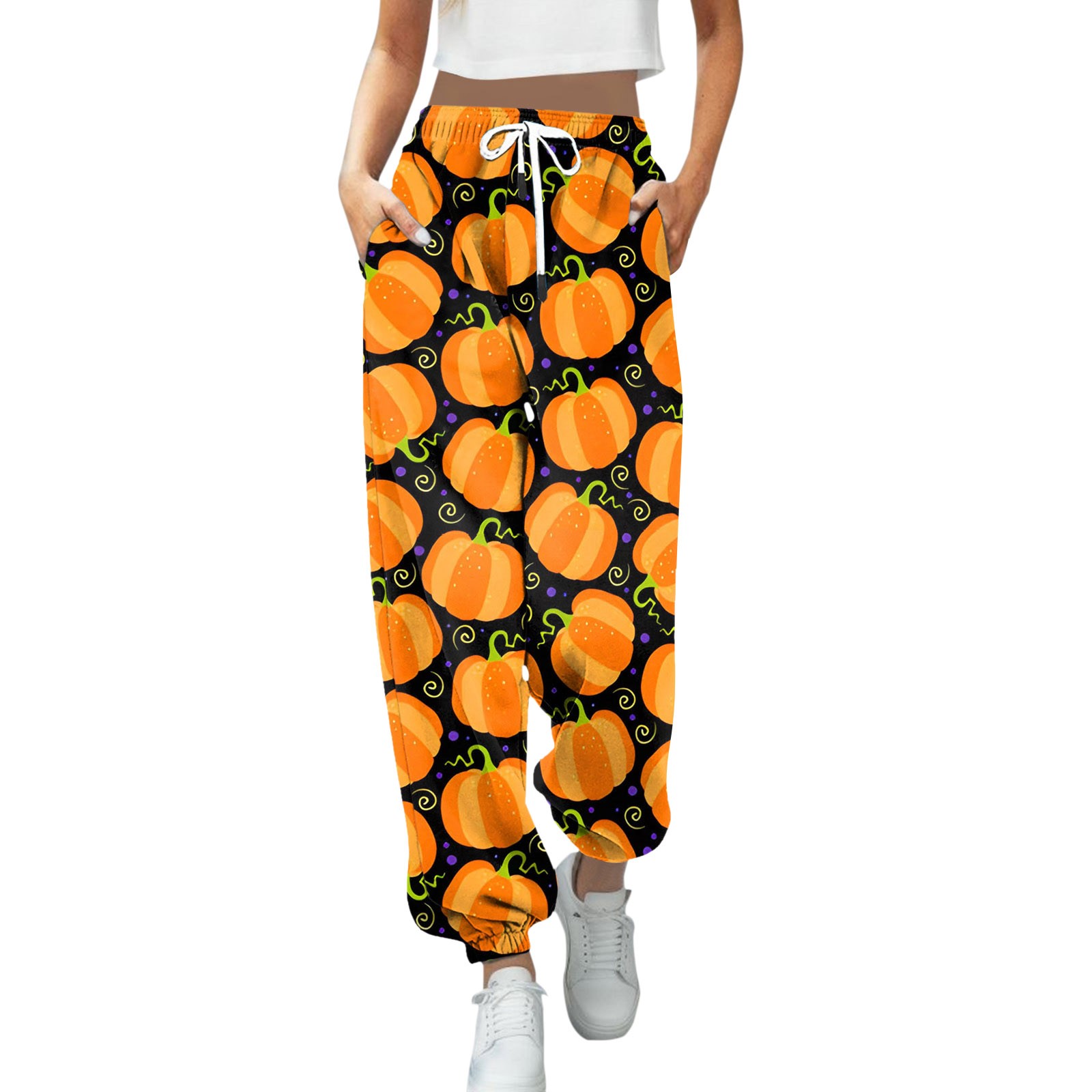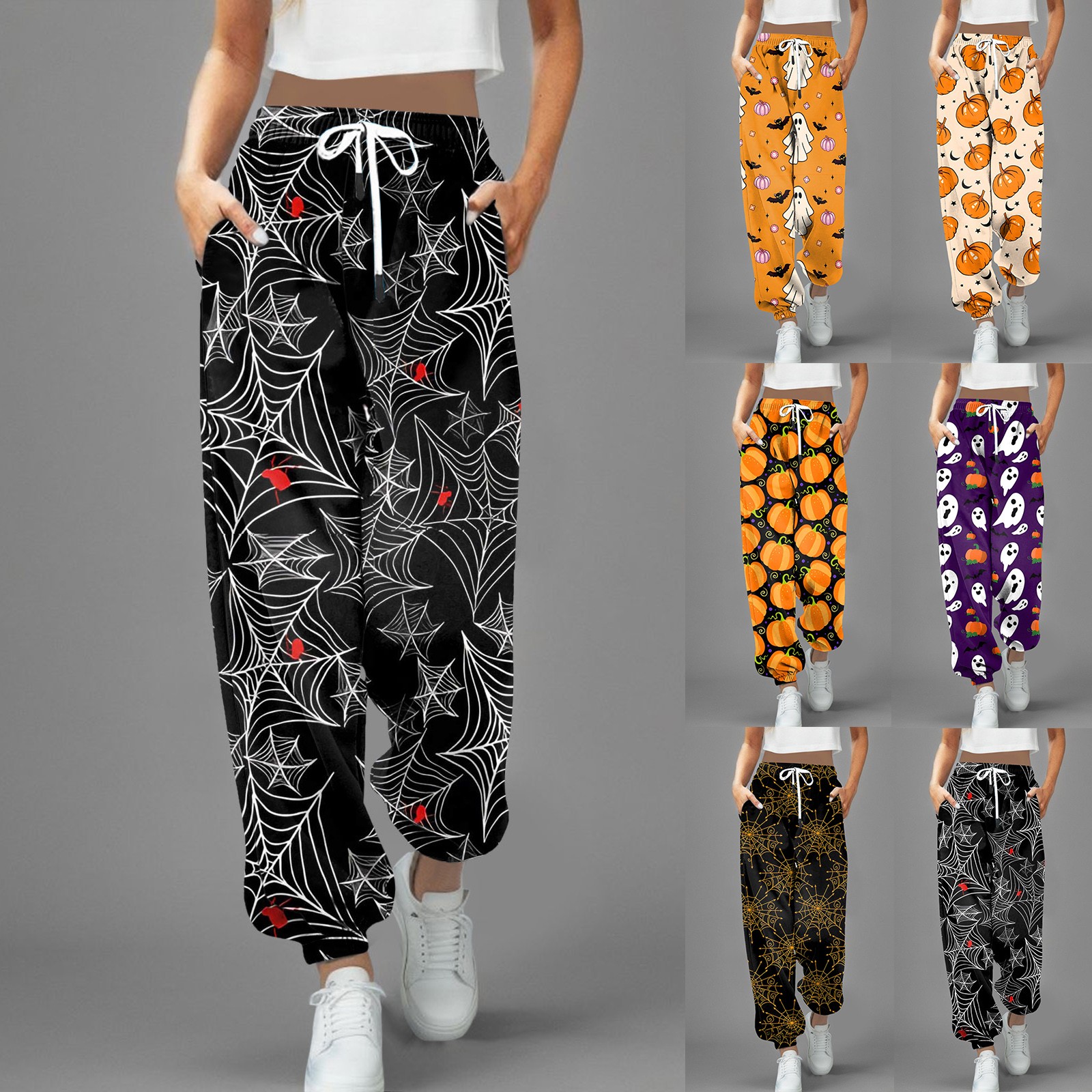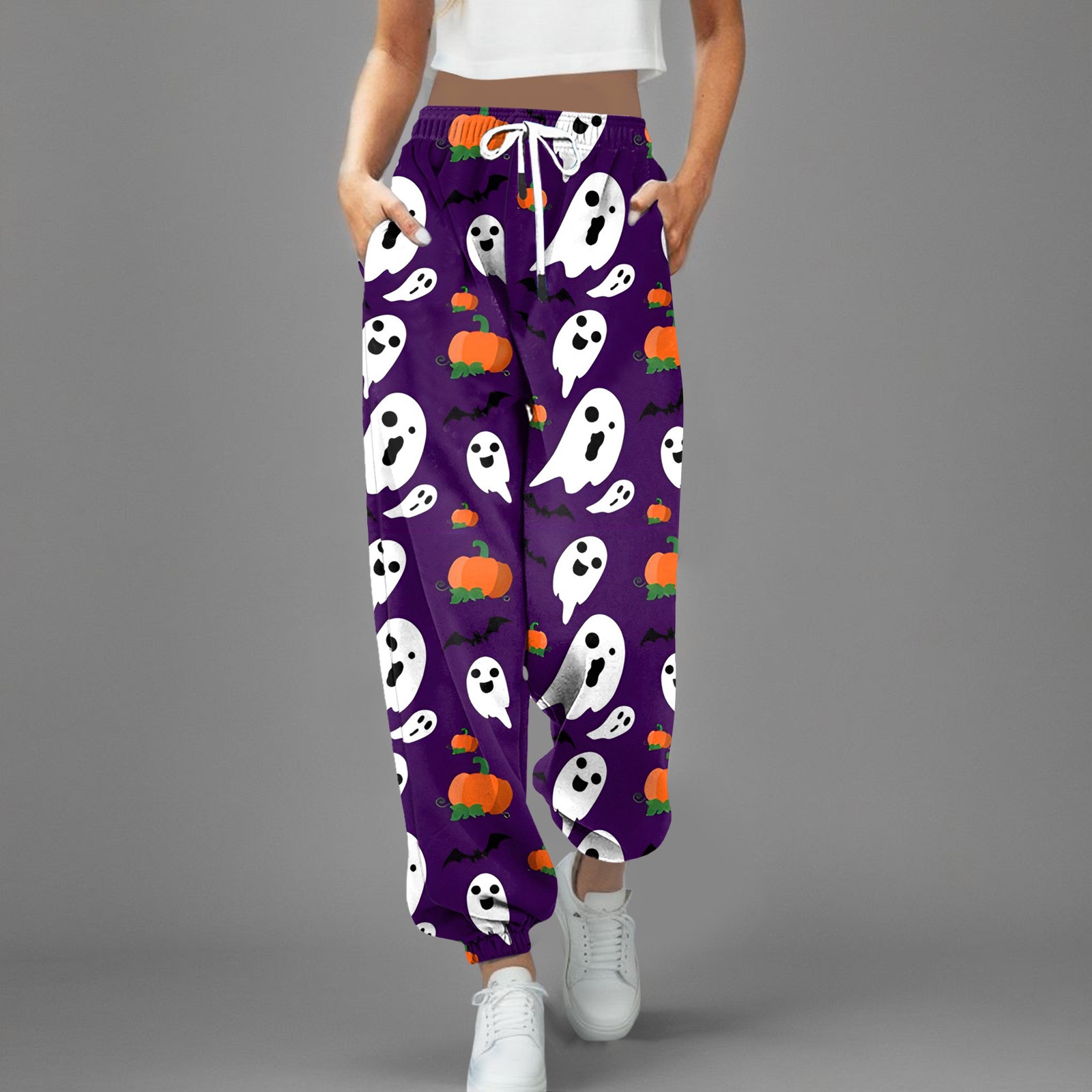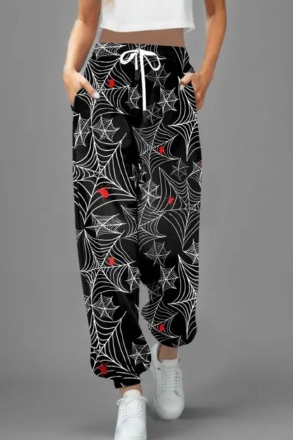 Halloween Women High Waist Lace-Up Print Loose Pants
