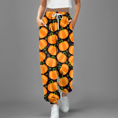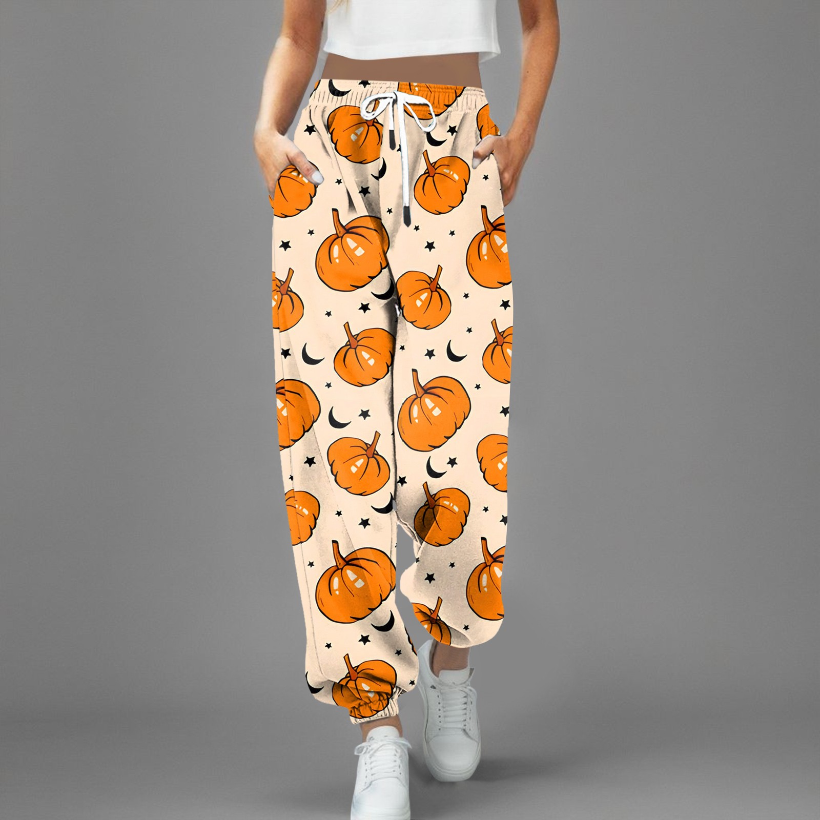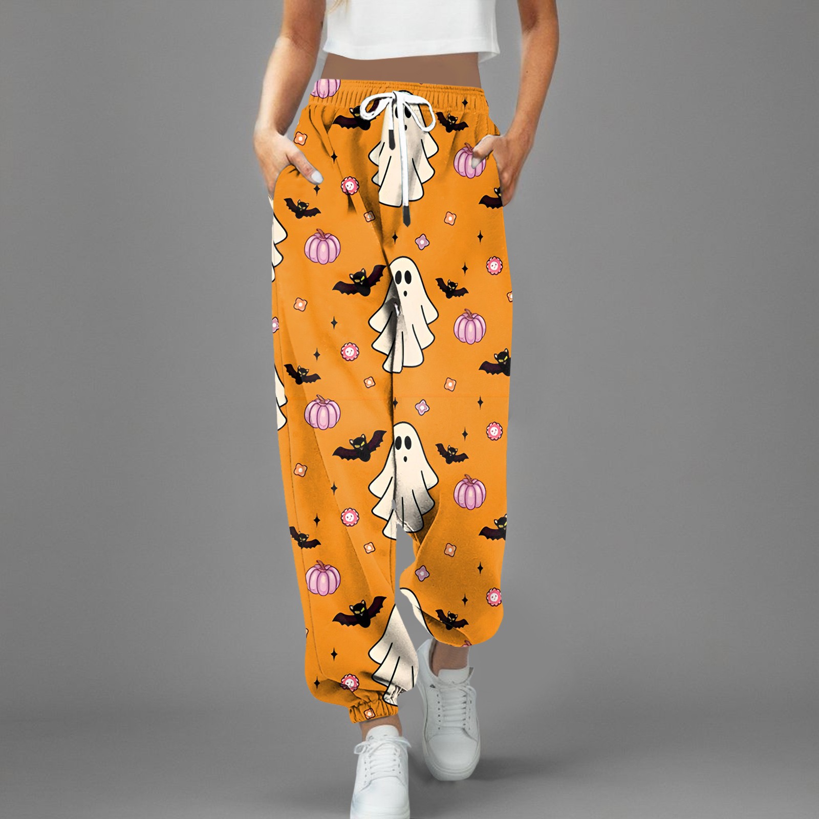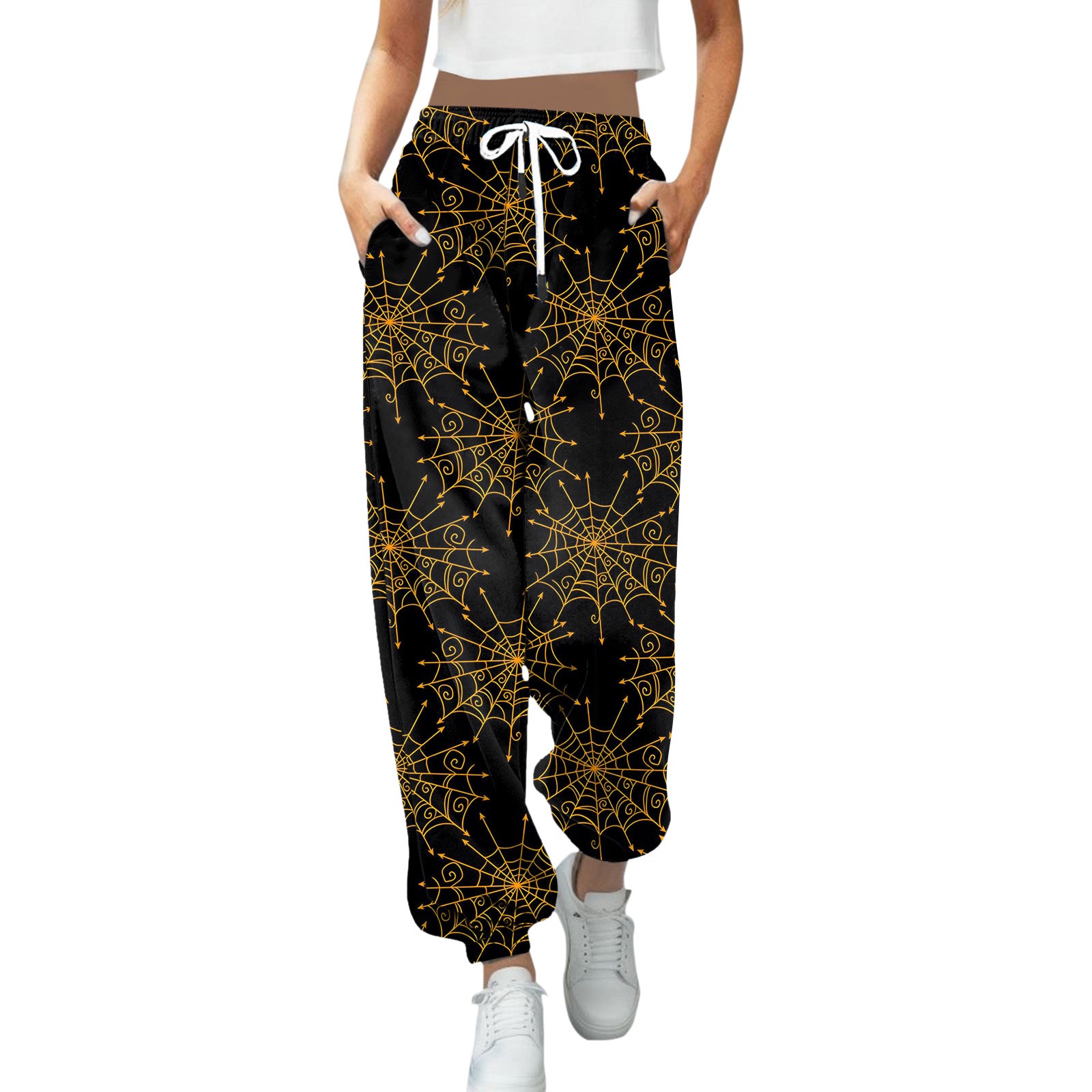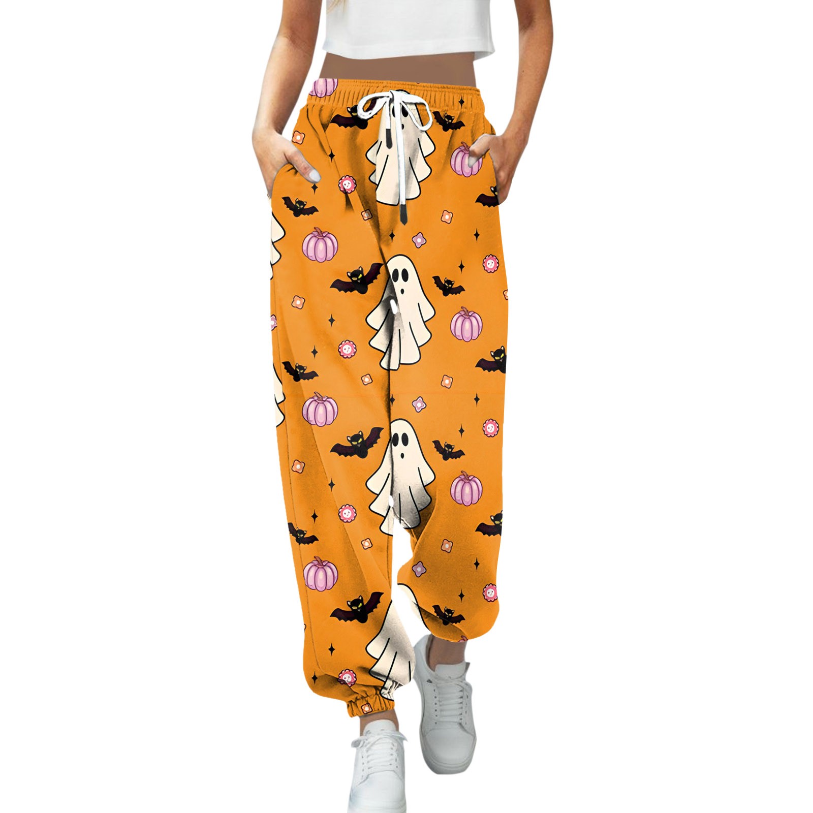 Halloween Women High Waist Lace-Up Print Loose Pants