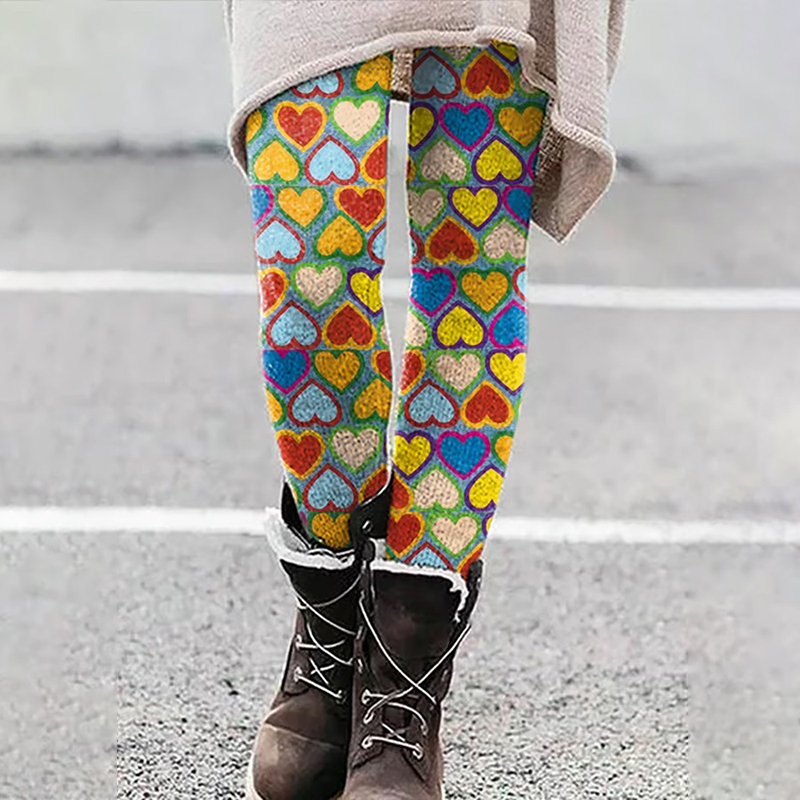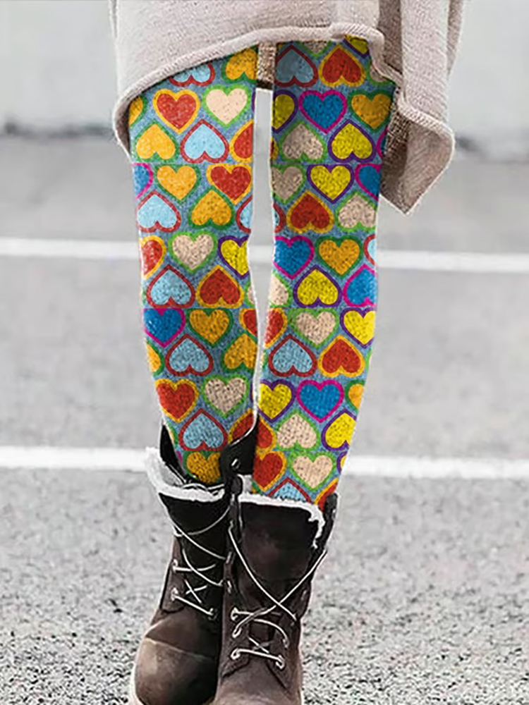 Heart Cologne Carnival Print Casual Leggings