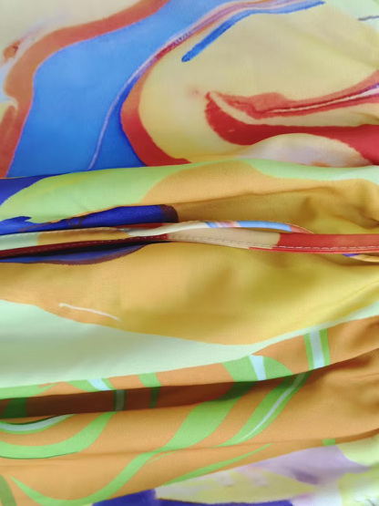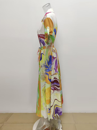 Loose Asymmetric Printed Lapel Blouse + A-Line Drawstring Elasticity Skirt Two Pieces Set