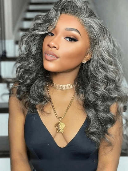 🔥LAST DAY 50% OFF🔥Salt And Pepper Wavy Glueless Gray Color wig
