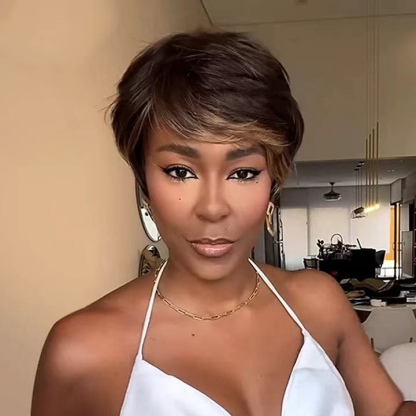 Machine Made Dark Brown PIxie Wig