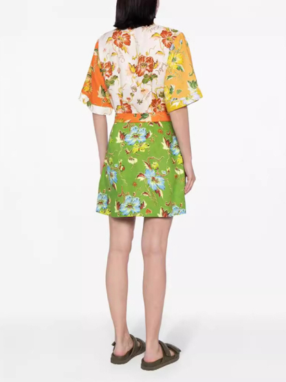 Short Sleeves Flower Print Lapel Collar Mini Dresses