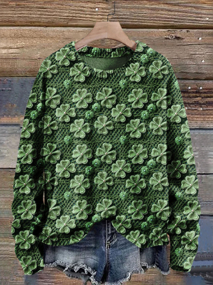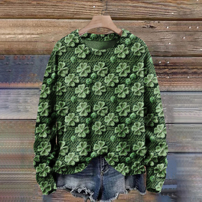 St. Patrick's Day Four Leaf Clover Art Print Knit Pullover Sweater
