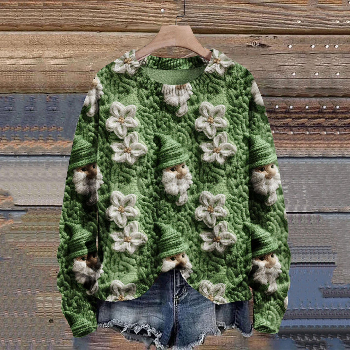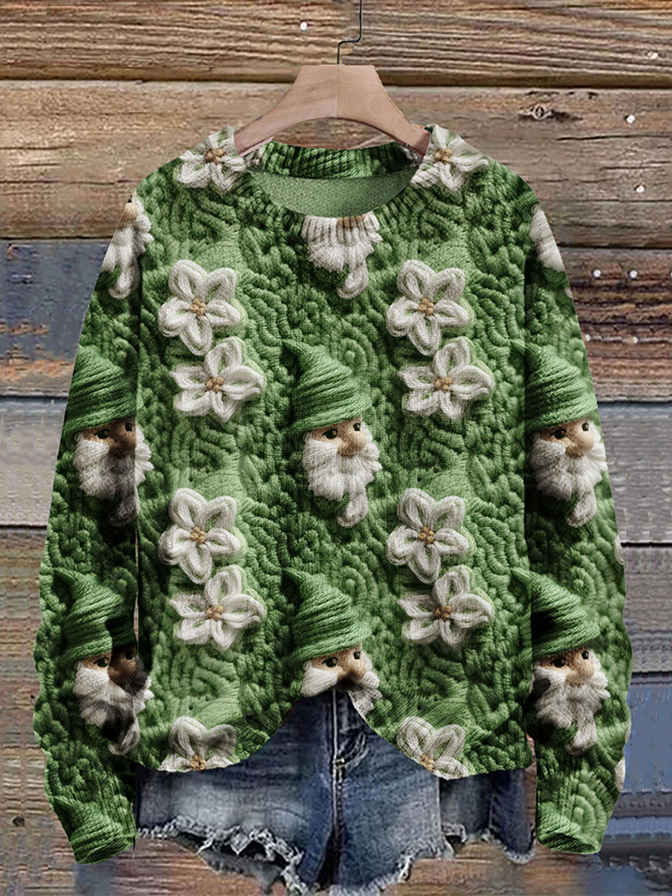 St. Patrick's Day Green Dwarf Art Print Knit Pullover Sweater