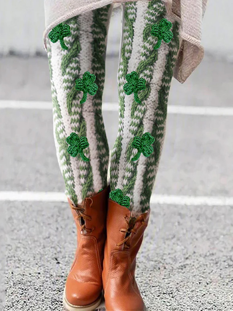 St. Patrick's Day Shamrock Knitting Leggings
