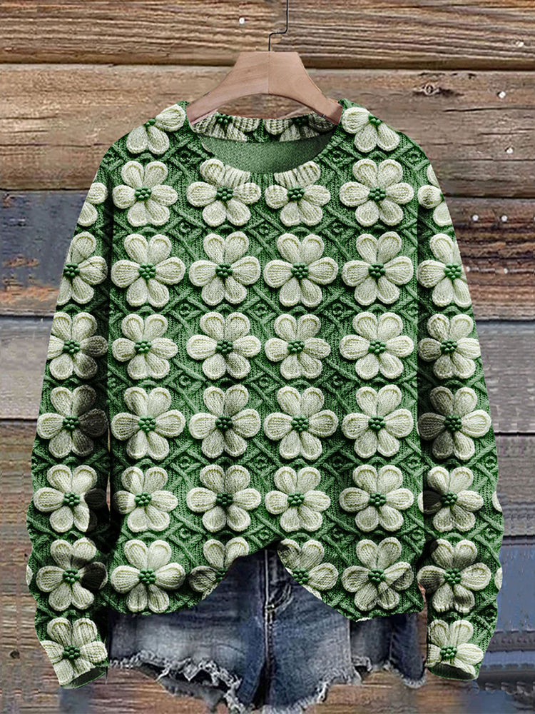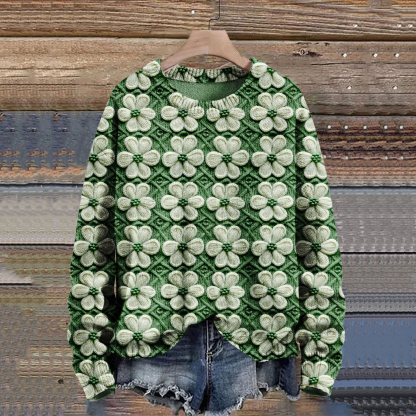 St. Patrick's Day Shamrock Print Knit Pullover Sweater