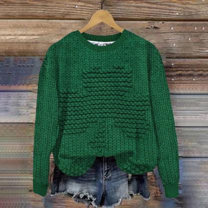 St. Patrick's Day Shamrock Print Pullover Knitted Sweater