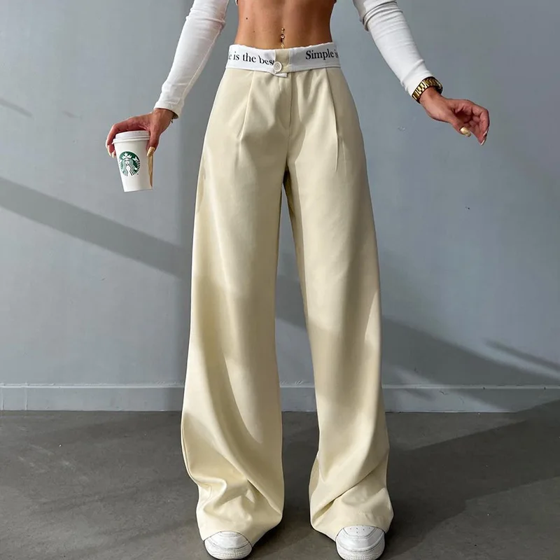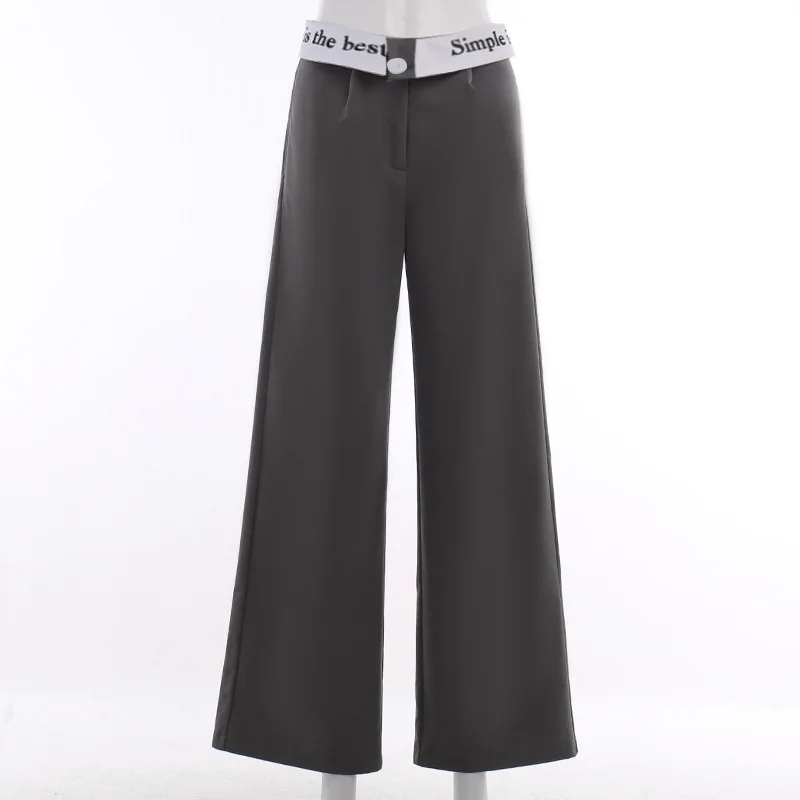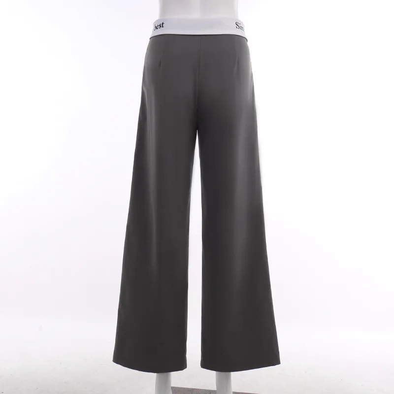 Summer Women's Fashion Knitted High Waist Loose Casual Straight Wide Leg Pants