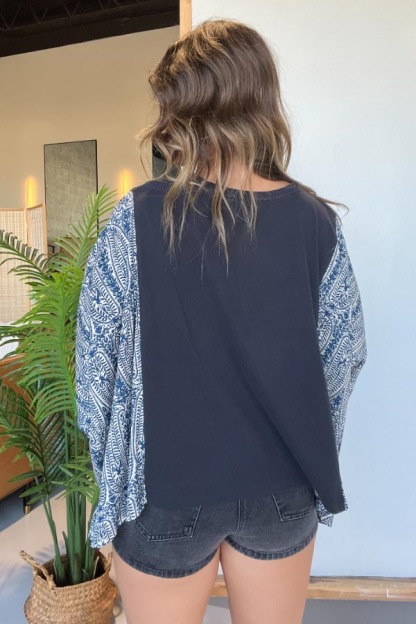Washed Vintage Graphic Tee with Batwing Sleeve