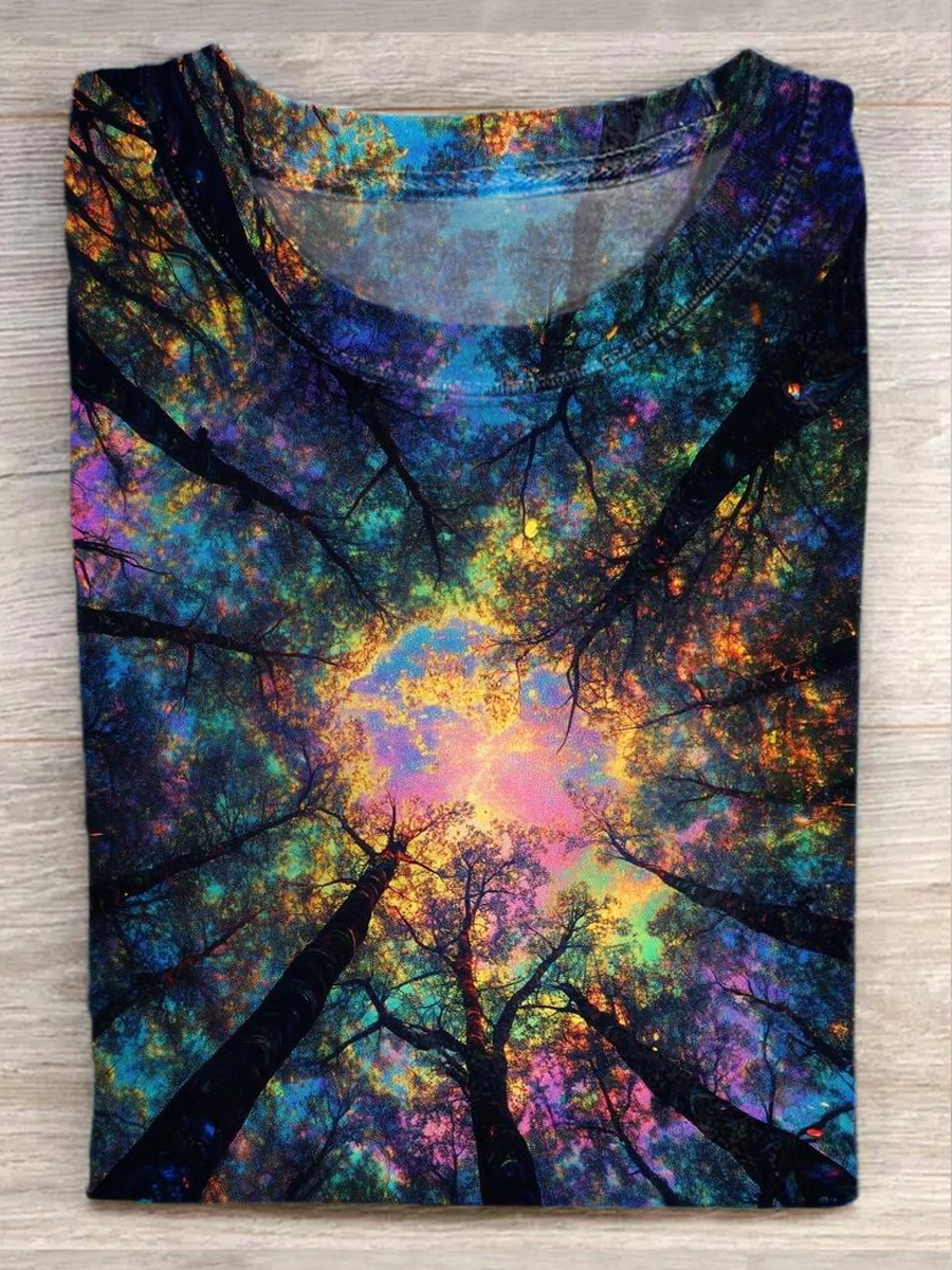 Unisex Psychedelic Forest Print Casual Short Sleeve T-Shirt