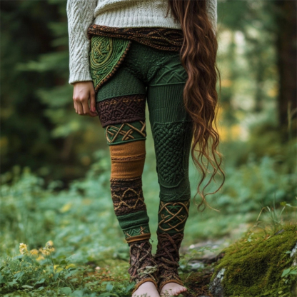 Vintage Celtic Chunky Patchwork Cozy Knit Leggings