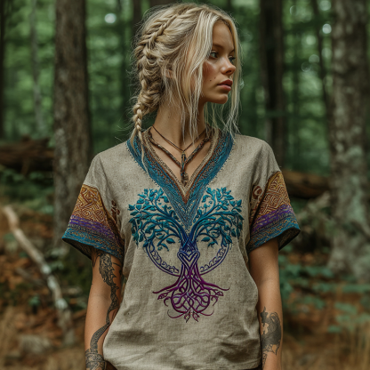 Vintage Celtic Knot Tree Of Life Gradient V-neck T-shirt