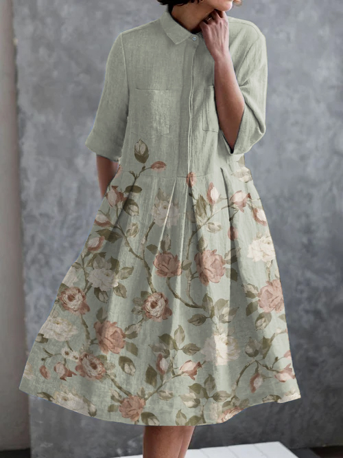 Vintage Floral Print Casual Pocket Half Sleeve Dress