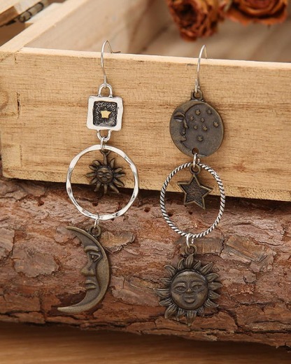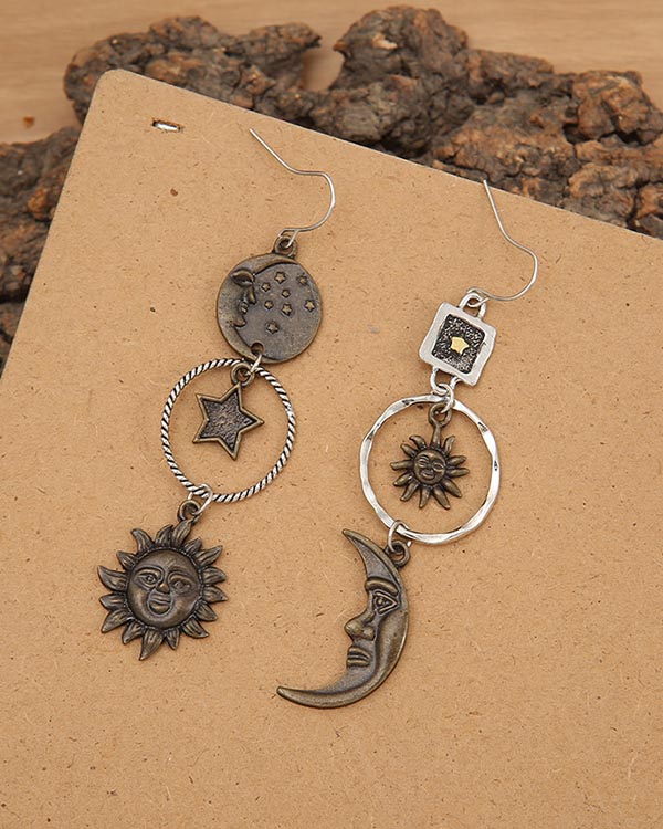 Vintage Sun Moon Drop Earrings