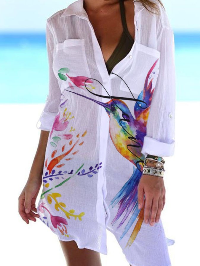 Watercolor Hummingbird Shirt Dress