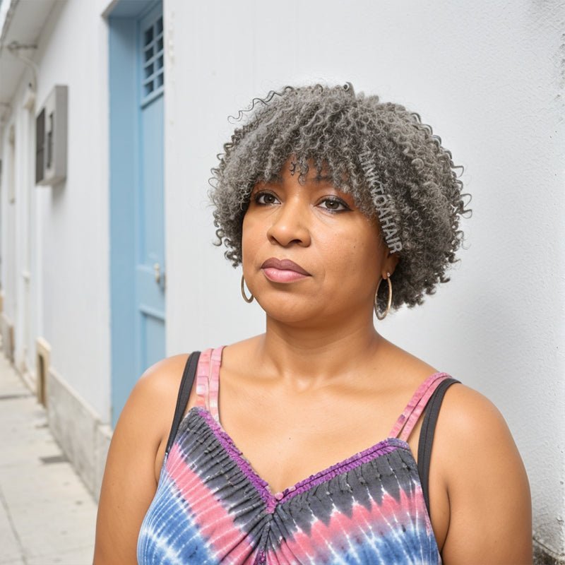 Salt And Pepper Kinky Curly Glueless Bob Wig 100%