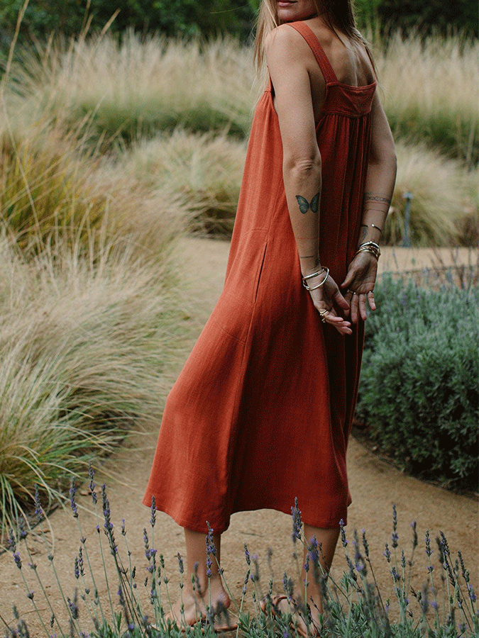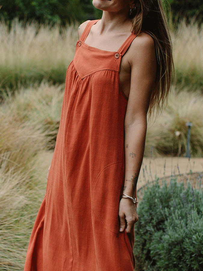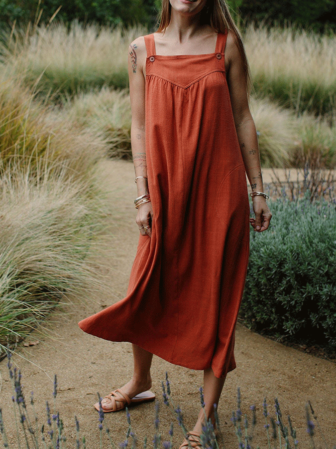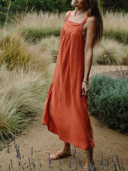 Women'S Casual Cotton Linen Solid Color Dress