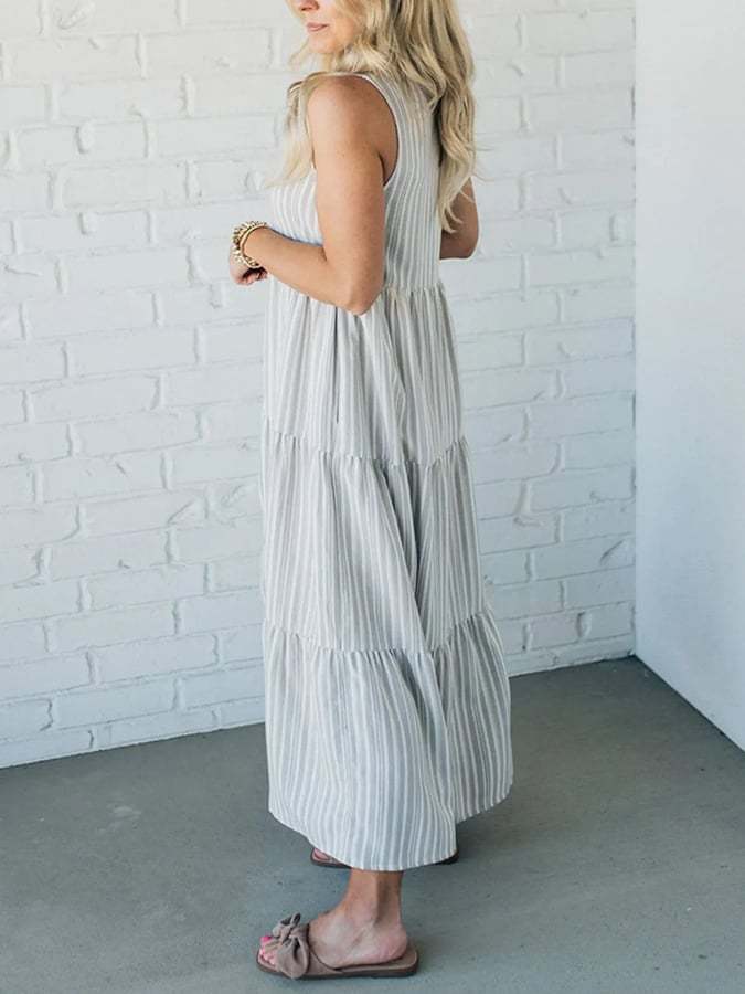 Women's Casual Striped Shirt Sleeveless Dress