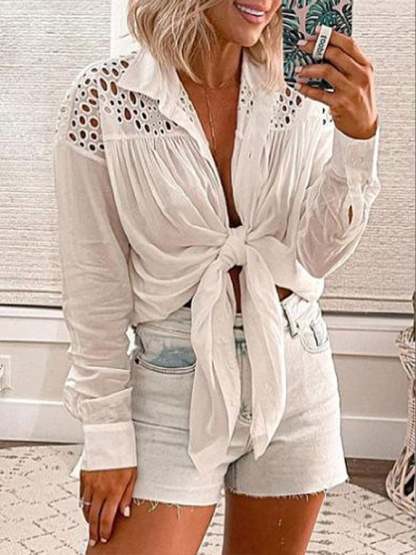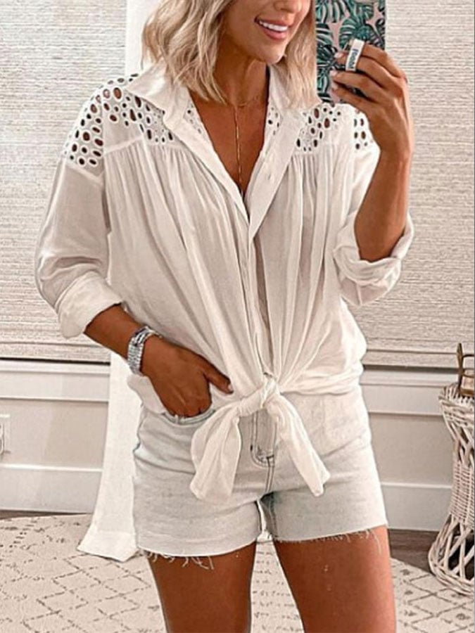 Women's Cutout Patchwork Casual Shirt
