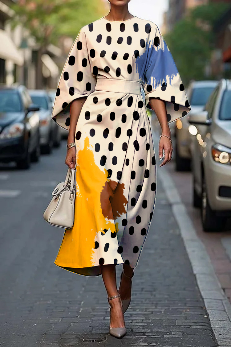 Women's Elegant Abstract Art Polka Dot Print Midi Dress