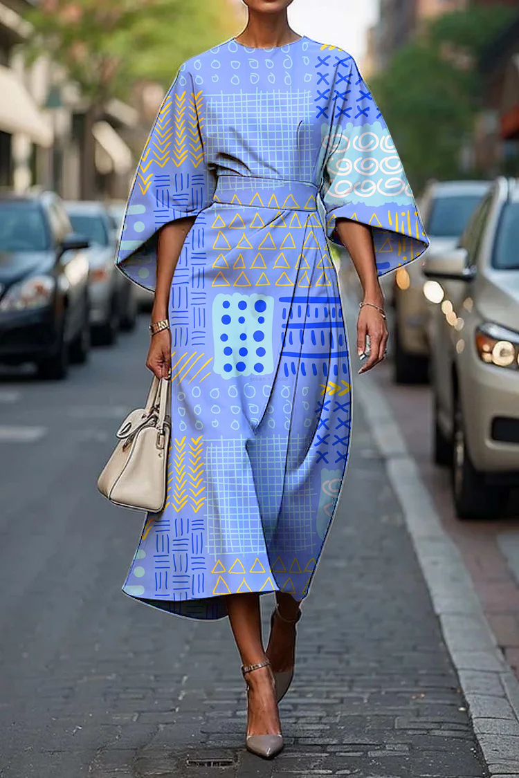 Women's Elegant Abstract Art Print Midi Dress